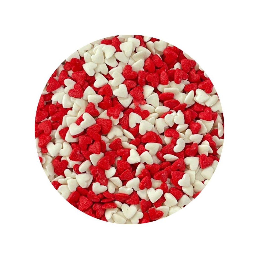 Cukrová srdíčka bílá a červená (80 g) Cukrářská ♡
