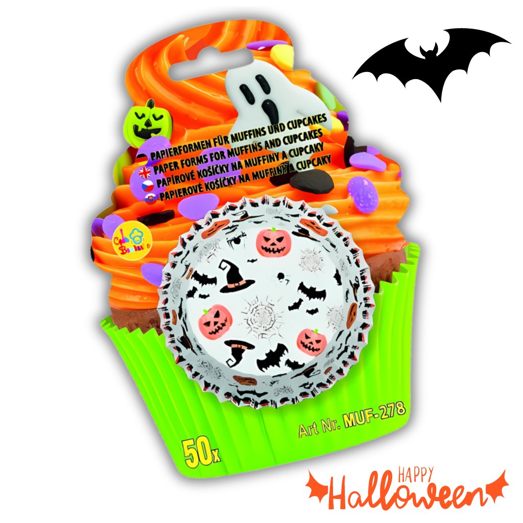 Alvarak košíčky na muffiny Bílé s halloweenskými motivy (50 ks) ♡
