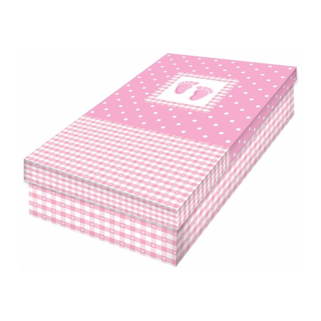 Alvarak dárková krabička růžová s dětskými stopami (26 x 17 x 7 cm) ♡