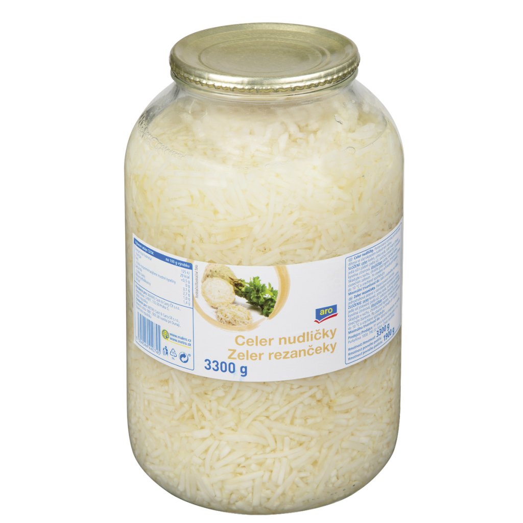 Nakupovat potraviny, drogerii a další potřeby pro domácnost online se vyplatí. Náš online supermarket Terunka.cz, toho má v kategorii: mnohem více. Prohlédněte si celou naší nabídku a ušetřete svůj čas i peníze.aro Celer nudličky 3300 g za skvělou cenu, máme skladem.