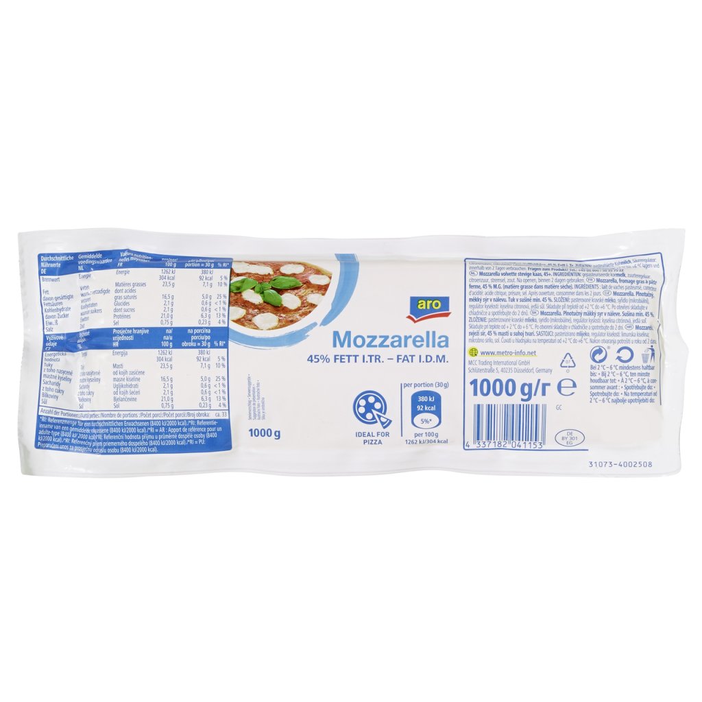 NUTRIČNÍ HODNOTY produktu - aro Mozzarella 45% chlaz. 1 kg / 100g výrobku