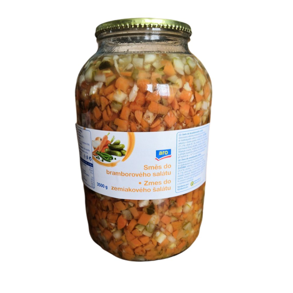 - ARO Směs do bramborového salátu. Zpracovaná zelenina vícedruhová sterilovaná ve sladkokyselém nálevu se sladidlem.