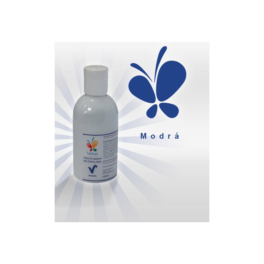 Složení: Sójový olej, barvivo: E133, emulgátor: E322, zvlhčovadlo: E1520