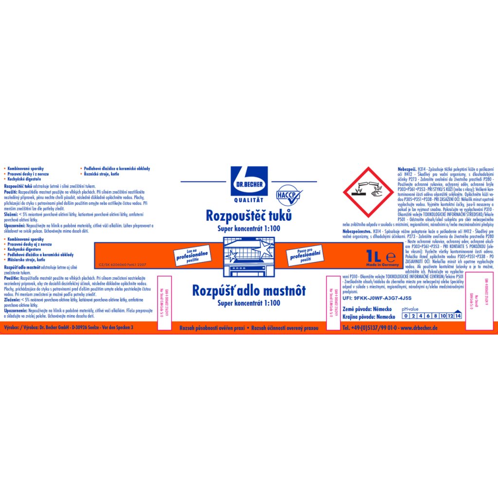Důležité upozornění: | Dle zákona č. 258/2000 Sb. je minimální věk kupujícího pro uzavření kupní smlouvy na zboží klasifikované jako žíravé 18 let. Vloží-li kupující do košíku takové zboží, prohlašuje tím, že tuto podmínku věku splňuje. |