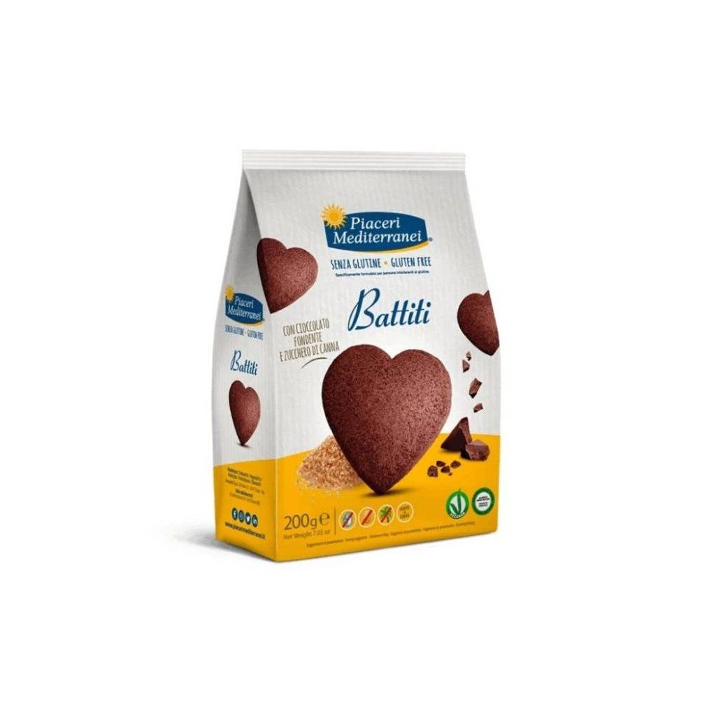 Sušenky Battiti nabízejí výraznou chuť hořké čokolády a sladkost třtinového cukru. Jsou ideální pro všechny, kdo hledají bezlepkové a zároveň veganské sladkosti, bez přidaného MLÉKO, vajec a palmového oleje.