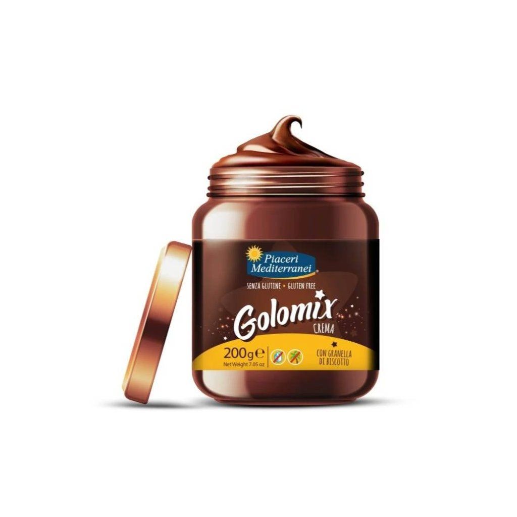 Golomix Crema od Piaceri Mediterranei je lahodná pomazánka, která kombinuje jemnou chuť lískových oříšků, bohatost čokolády a intenzivní aroma kakaa. Křupavá granola z Golomix sušenek dodává této pomazánce jedinečnou texturu a zvýrazňuje její chuť. Produkt je bez lepku, MLÉKO a palmového oleje, což z něj činí ideální volbu pro vegany a osoby s intolerancí na laktózu. Je perfektní na pečivo nebo jen tak na lžičku.