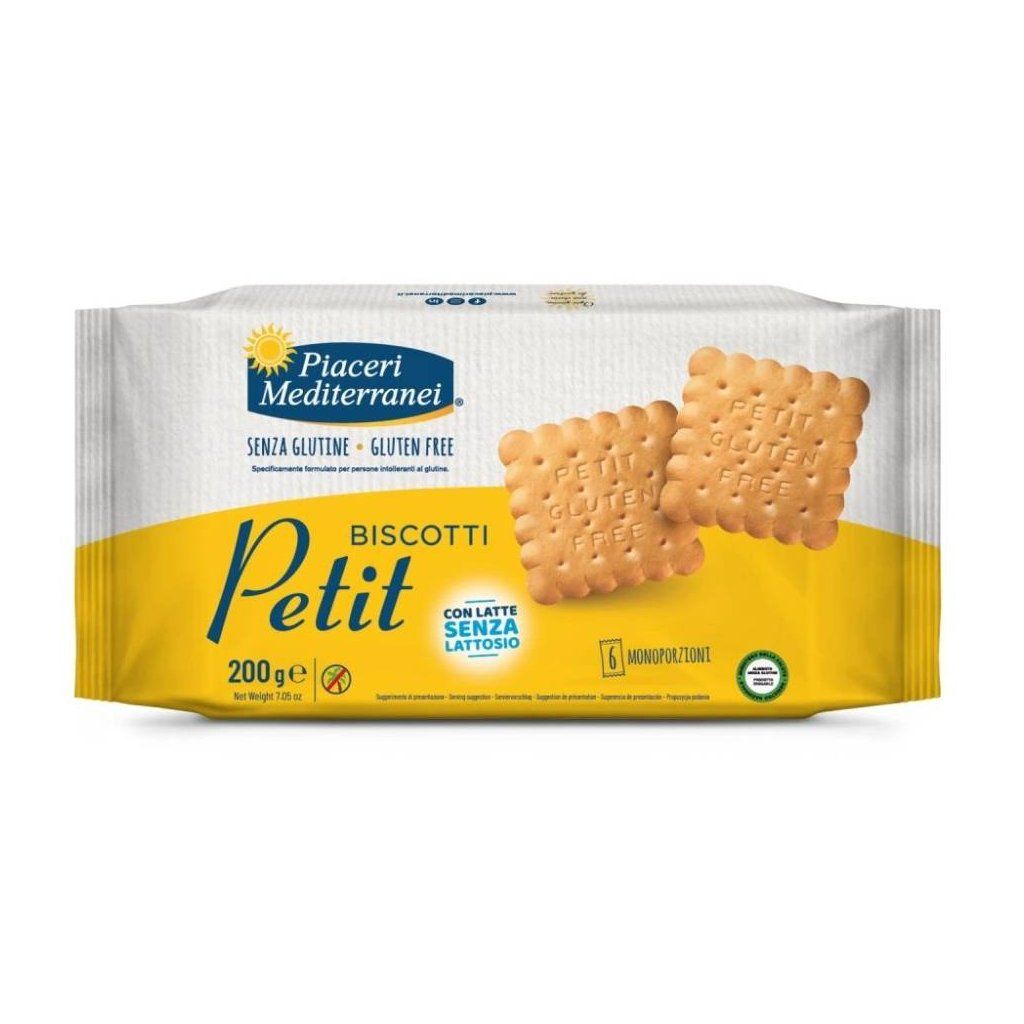 Piaceri Mediterranei Biscotti Petit jsou jemné sušenky bez lepku, ideální ke snídani nebo odpolední svačině nebo pro přípravu Vašich oblíbených dezertů. Díky své lehké a křehké konzistenci se tyto sušenky skvěle hodí k namáčení — ve mléce, rostlinném nápoji nebo k šálku čaje. Jsou skvělou volbou pro jedince s celiakií, protože kombinují jednoduché suroviny s příjemnou chutí.