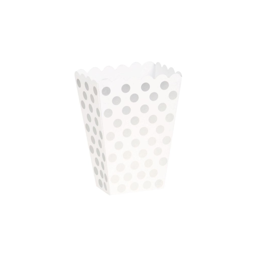 Bílo stříbrné krabičky na popcorn s puntíky, 8 ks /BP