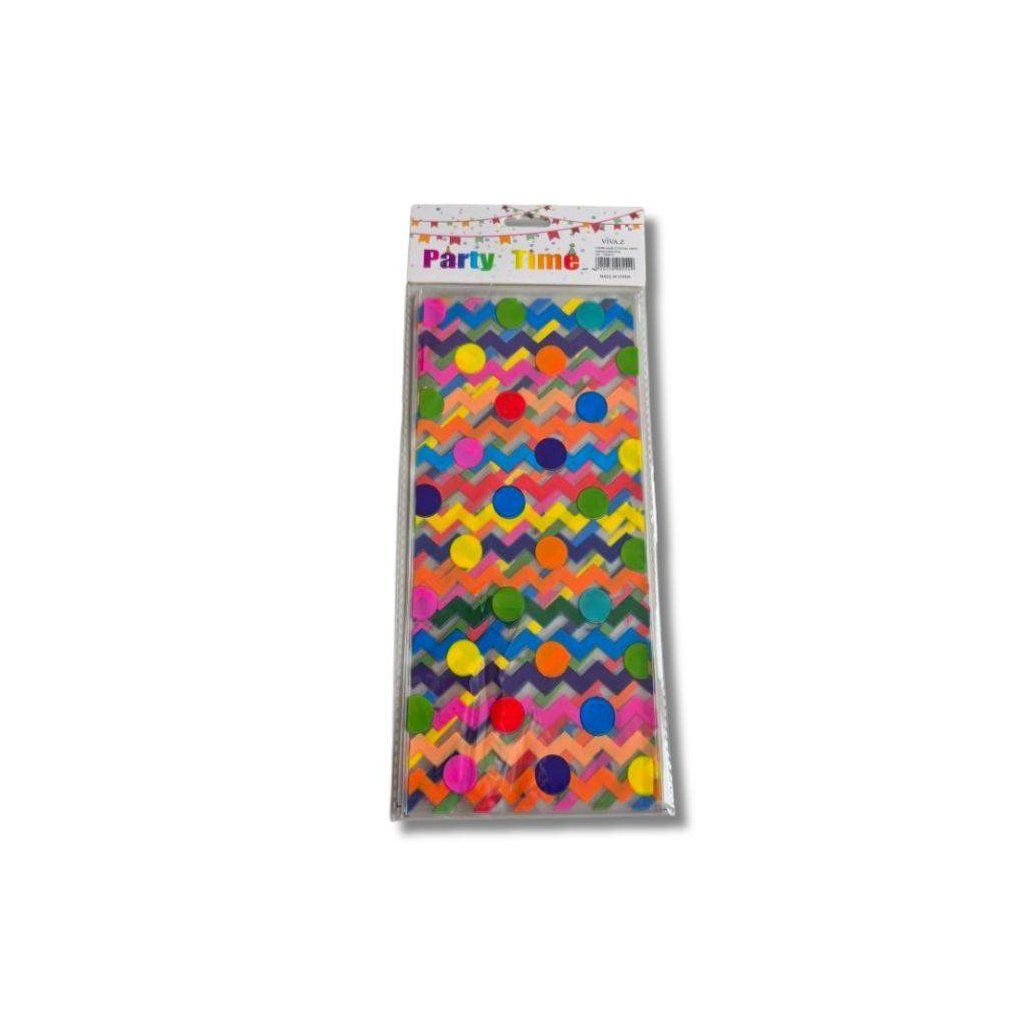 Sáček s motivem barevných tvarů je vyroben z čiré polypropylenové fólie a je určen pro přímý styk s potravinami.