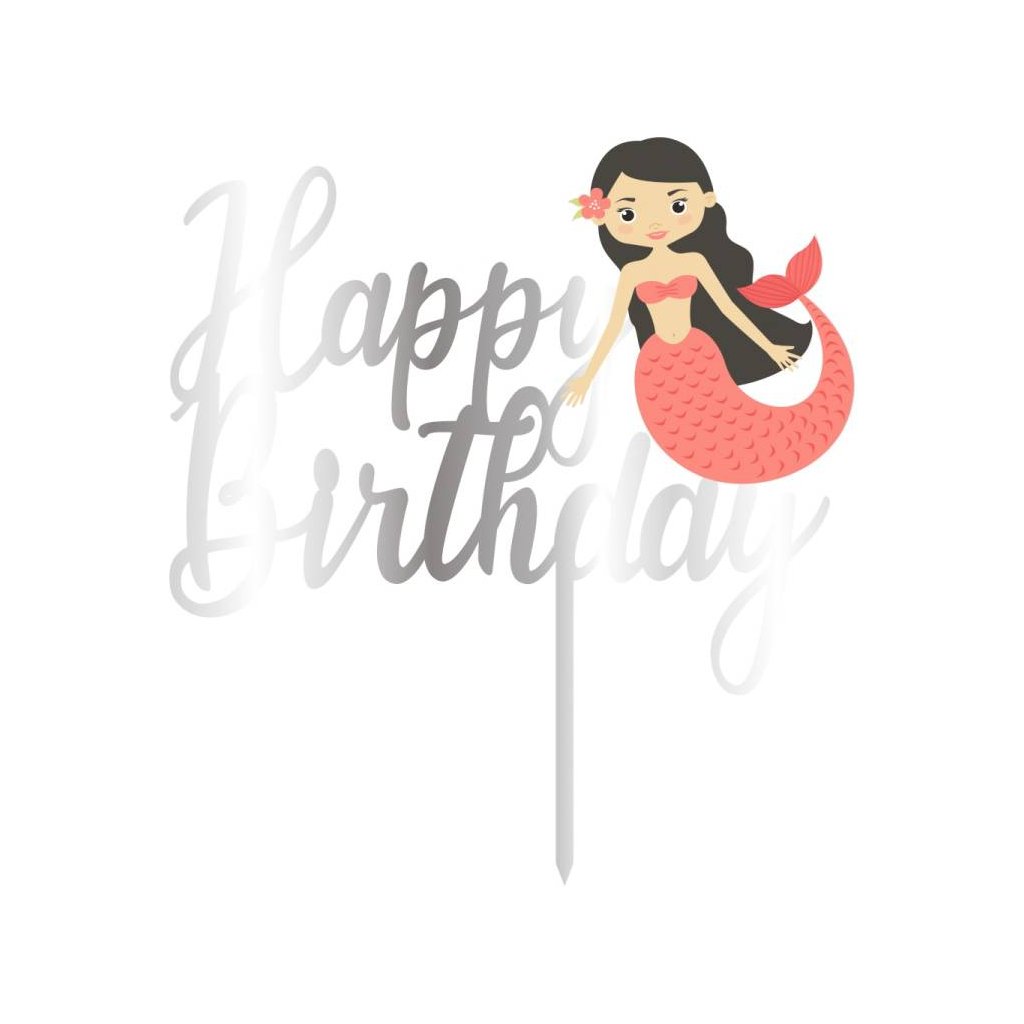 Cesil plastový zápich do dortu stříbrný Happy Birthday s mořskou pannou ♡