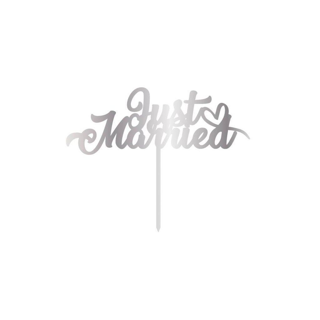 Cesil plastový zápich do dortu stříbrný Just Married ▹