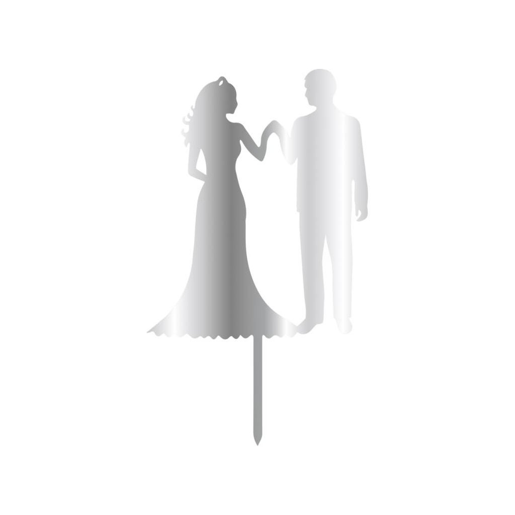 Cesil plastový zápich do dortu stříbrný Novomanželé držící se za ruce ♡