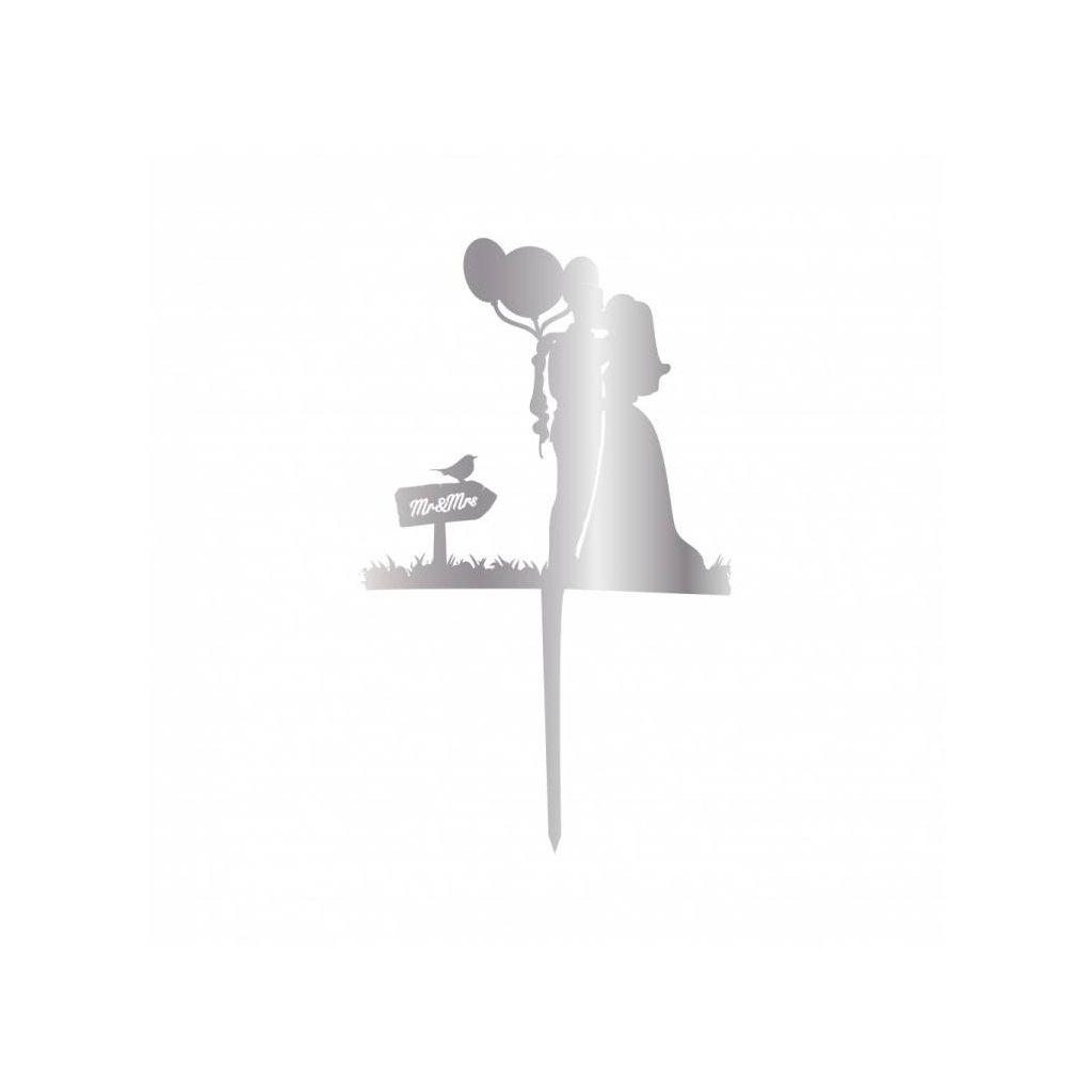Cesil plastový zápich do dortu stříbrný Novomanželé s balónky ♡