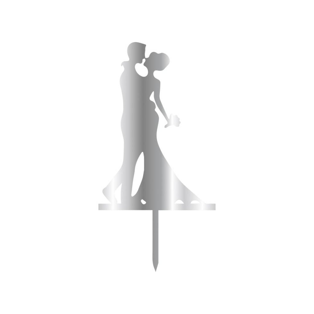 Cesil plastový zápich do dortu stříbrný Novomanželé s květinou ♡