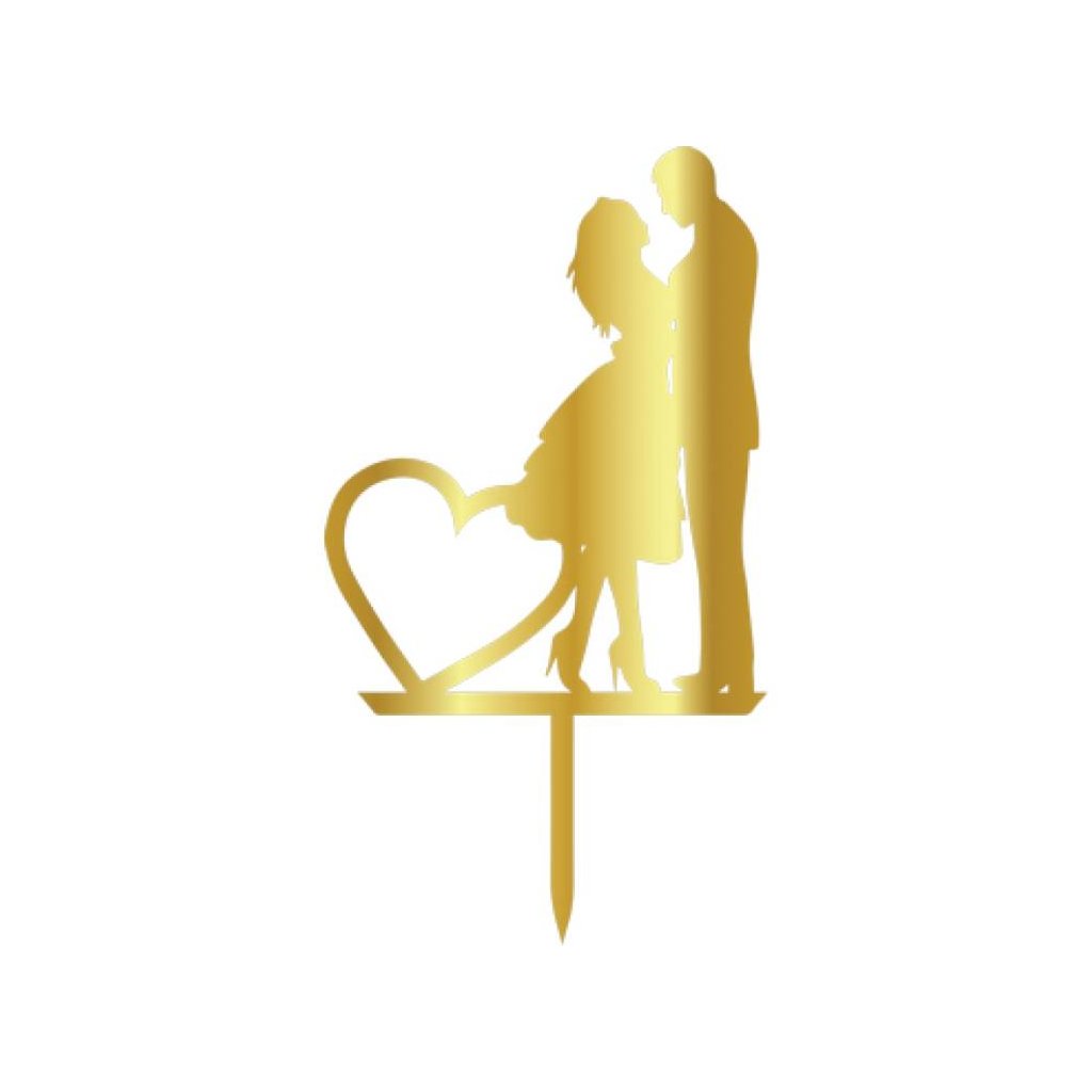 Cesil plastový zápich do dortu zlatý Novomanželé se srdíčkem ♡