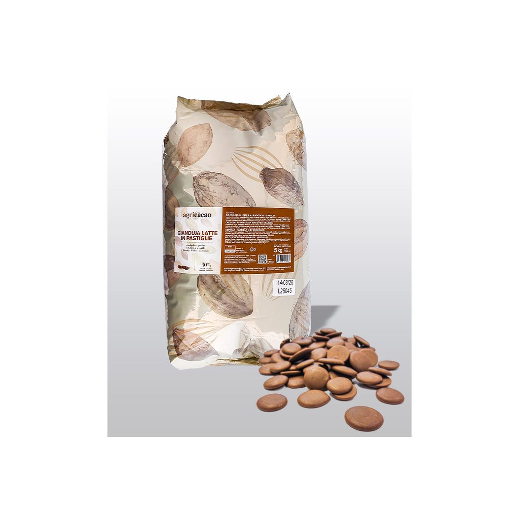 Čokoláda Agricacao Gianduja 27% mléčná lískooříšková, pecky 5 kg/sáček