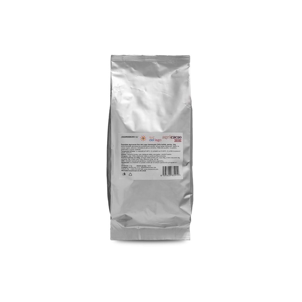 Čokoláda Agricacao Sur del Lago Venezuela 74% hořká, pecky 1 kg/sáček alu