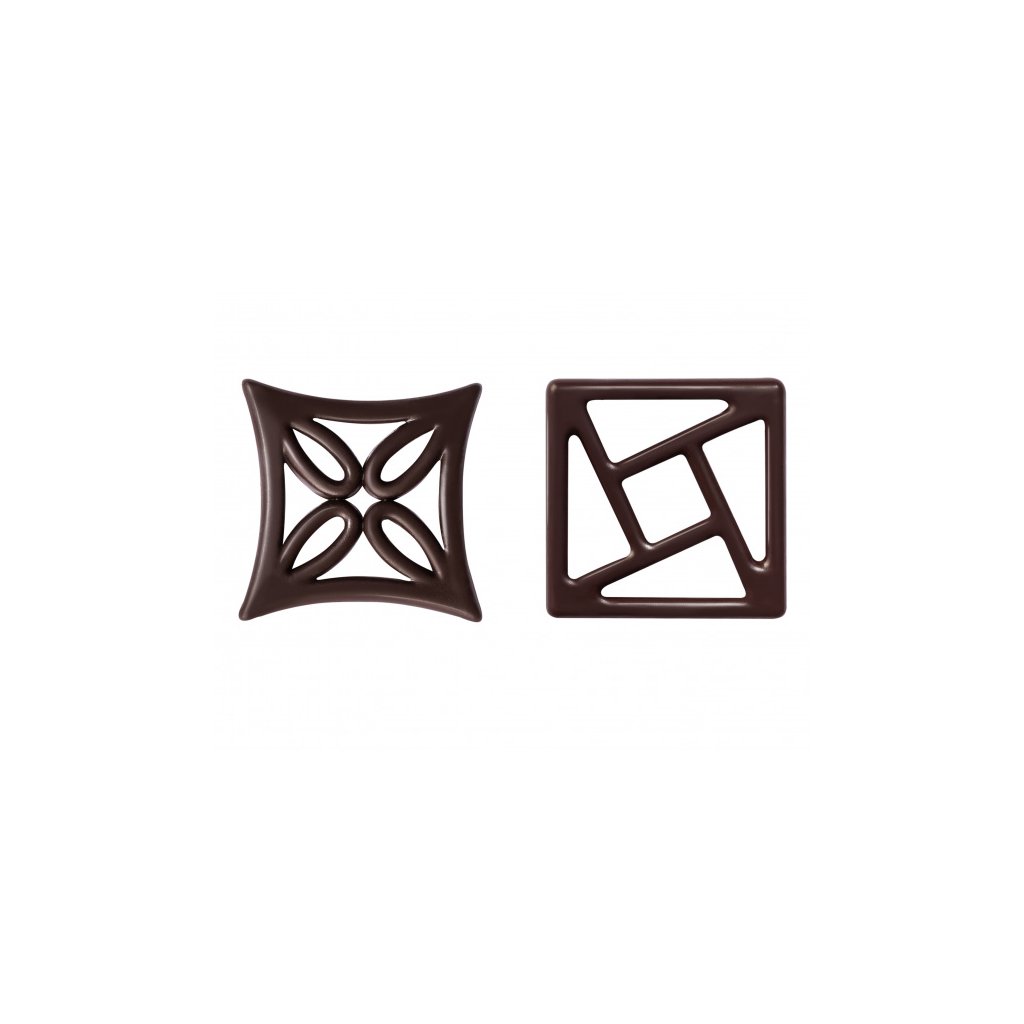 Čokoládové filigrány různých tvarů - Harmony set z hořké čokolády (obsah kakaové sušiny min 56%). Sada obsahuje 2 různé tvary (ornamenty). Vhodné především na zdobení cukrářských dezertů, slavnostních dortů, zmrzlinových pohárů a palačinek.