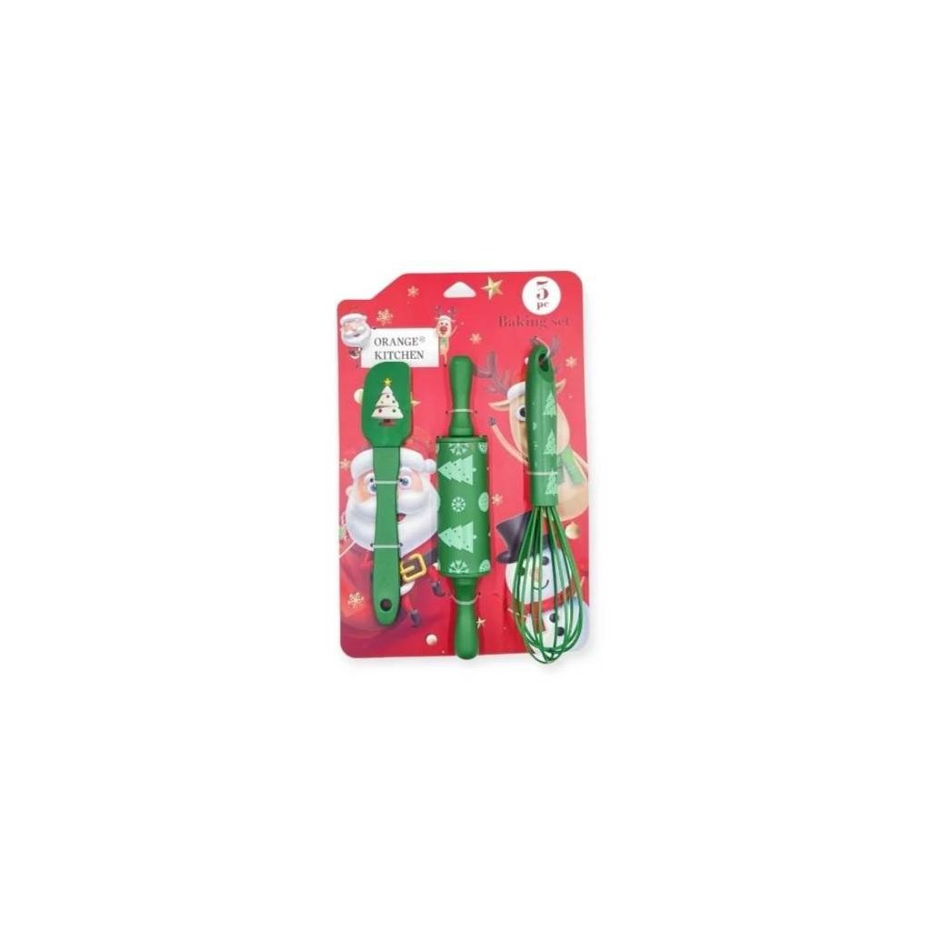 Cukrářská sada s vánočním motivem obsahuje tři praktické kuchyňské pomůcky – stěrku, váleček a šlehací metlu. Tato sada je ideální pro přípravu vánočního cukroví, dortů a dalších sladkých dobrot. Každý kus je zdoben vánočním designem, který navodí tu pravou sváteční atmosféru při pečení.