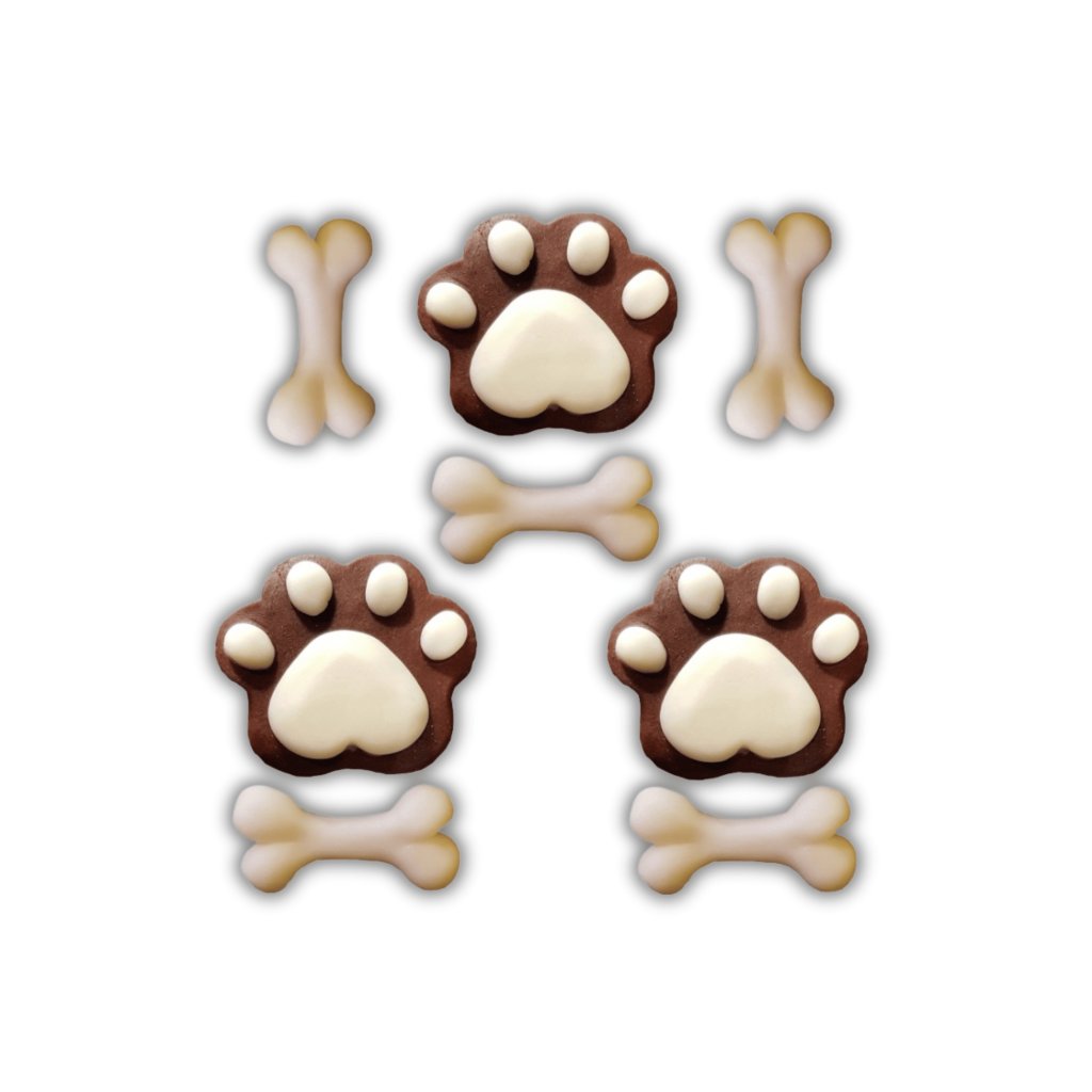 Cukrová dekorace psí tlapky a kostičky 8 ks - hnědé /48127
