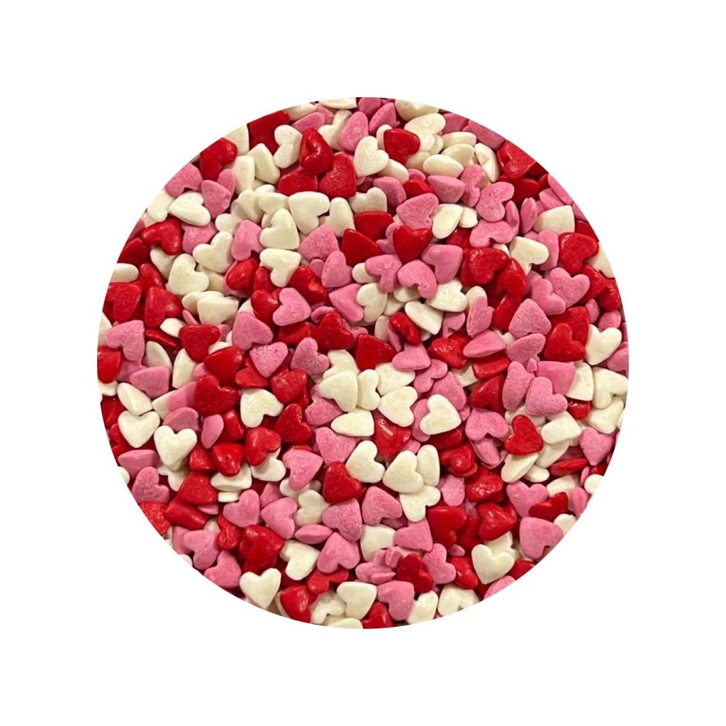 Produkt pro domácí cukráře: Cukrová srdíčka bílá, růžová a červená 50 g
