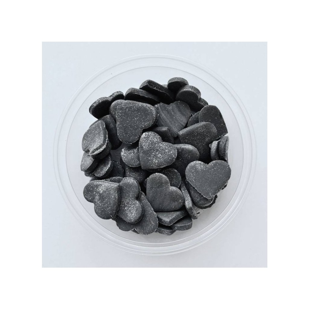 Cukrová srdíčka velká tmavě šedá perleťová (50 ks) ♡