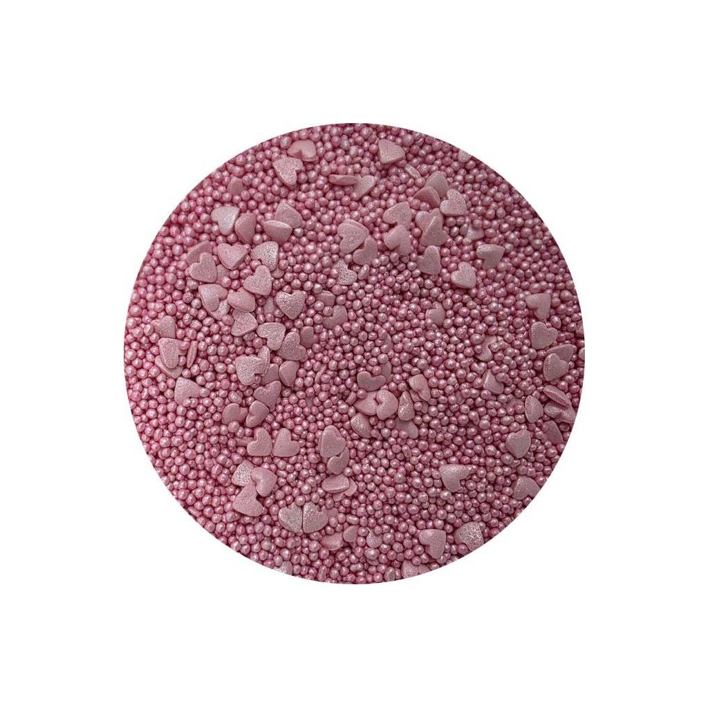 Cukrové zdobení metalické růžové srdce mix. Balení 80 g.| Kategorie: | Cukrářské posypy |