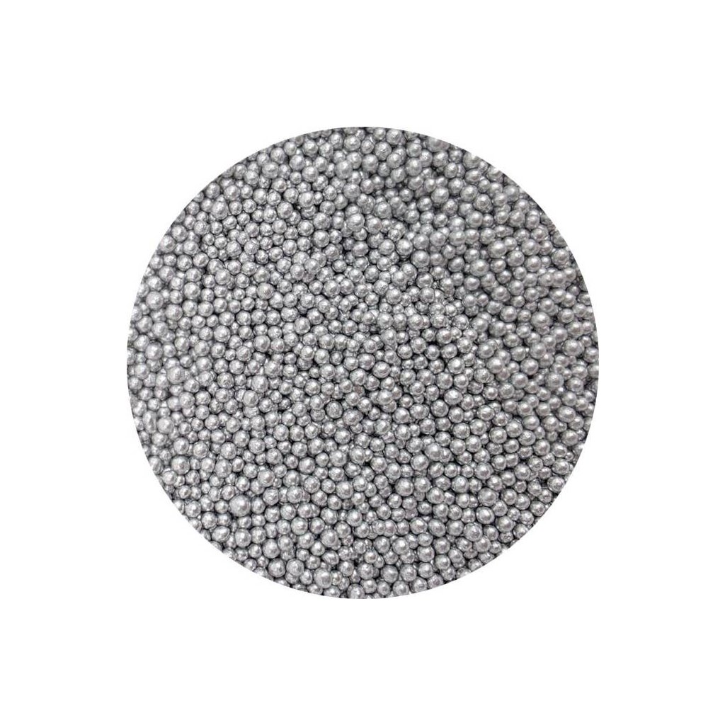 Cukrové perličky stříbrné metalické, velké 3-4 mm. Balení 80 g.| Kategorie: | Cukrářské posypy |