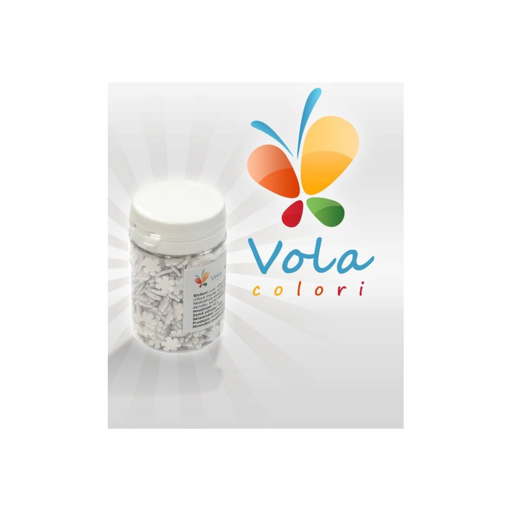 Cukrové sypání ve tvaru sněhových vloček v bílé barvě.