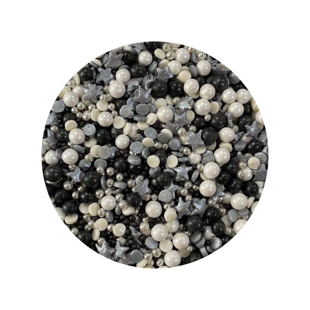 Cukrové zdobení bílé, stříbrné a černé Starry Night (50 g) ▹