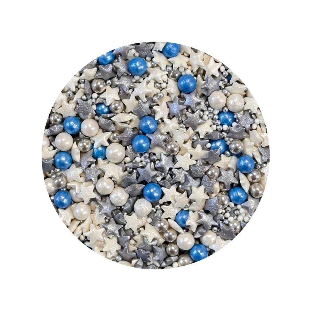 Cukrové zdobení bílé, stříbrné a modré Star Galaxy (50 g) ▹