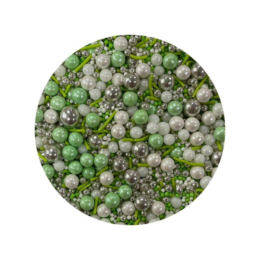 Cukrové zdobení bílé, stříbrné a zelené Mint Breeze (50 g) ▹