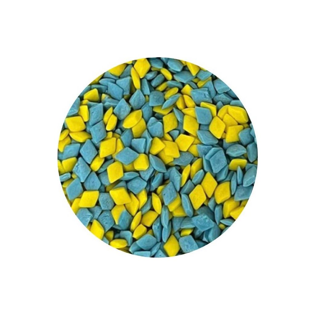 Cukrové zdobení žluto-modré kosočtverce. Balení 1 kg.| Kategorie: | Cukrářské posypy |