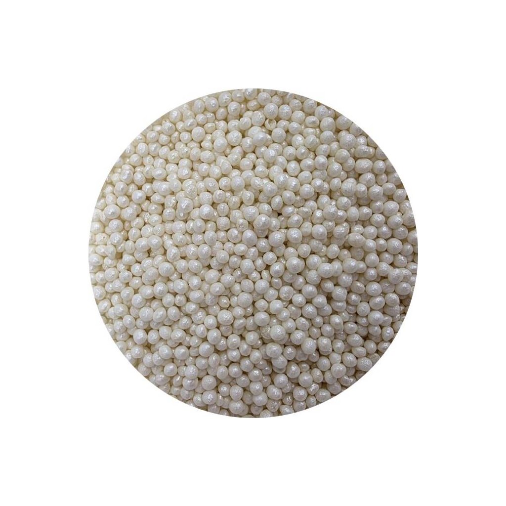 Cukrovo-rýžové perly bílé perleťové, velké 3-4 mm. Balení 80 g.Doplňkové parametry