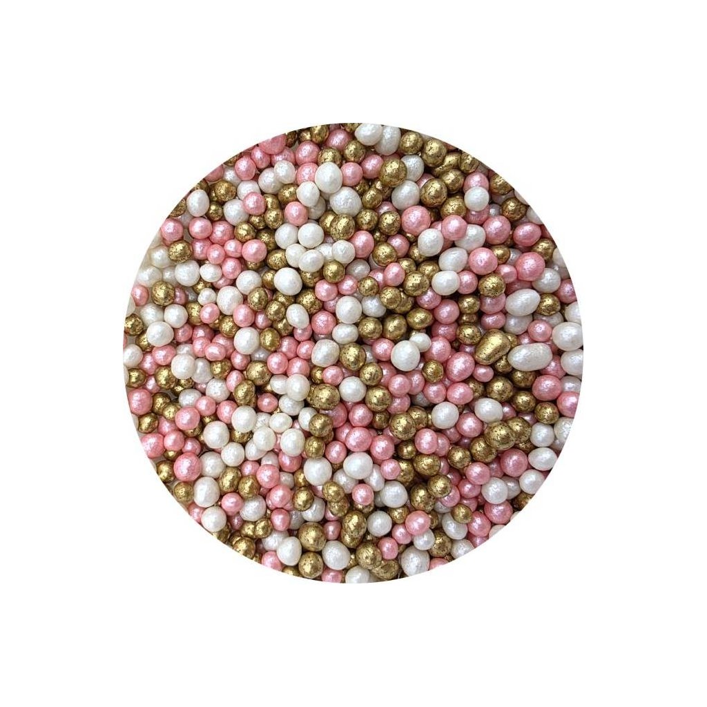 Cukrovo-rýžové perly růžovo-bílo-zlaté 5mm 80g - I LOVE CAKES