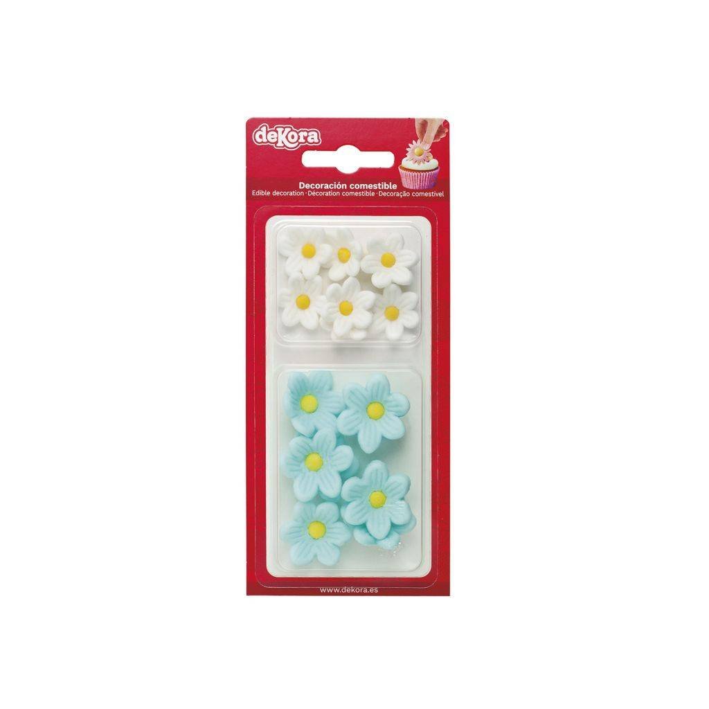 Cukrová dekorace obsahuje 7 bílých a 7 modrých kopretin.Doplňkové parametry