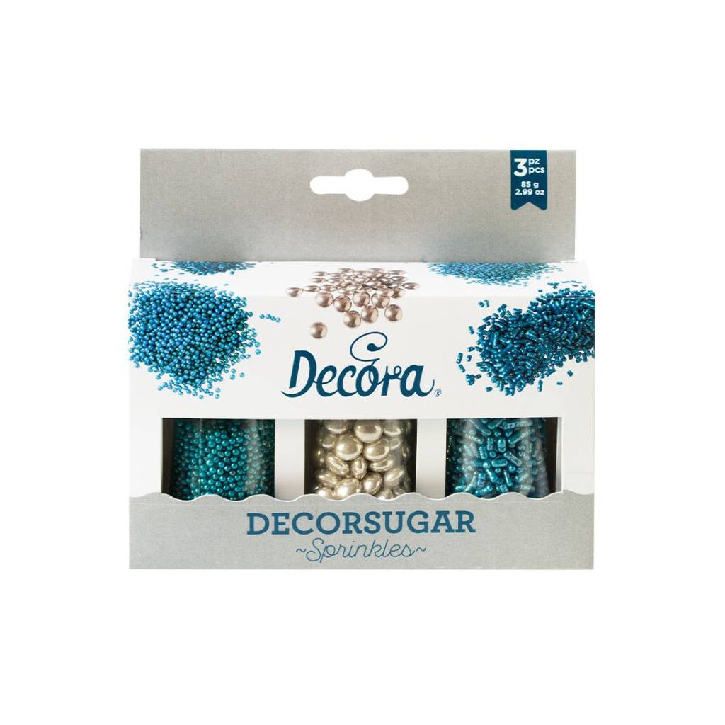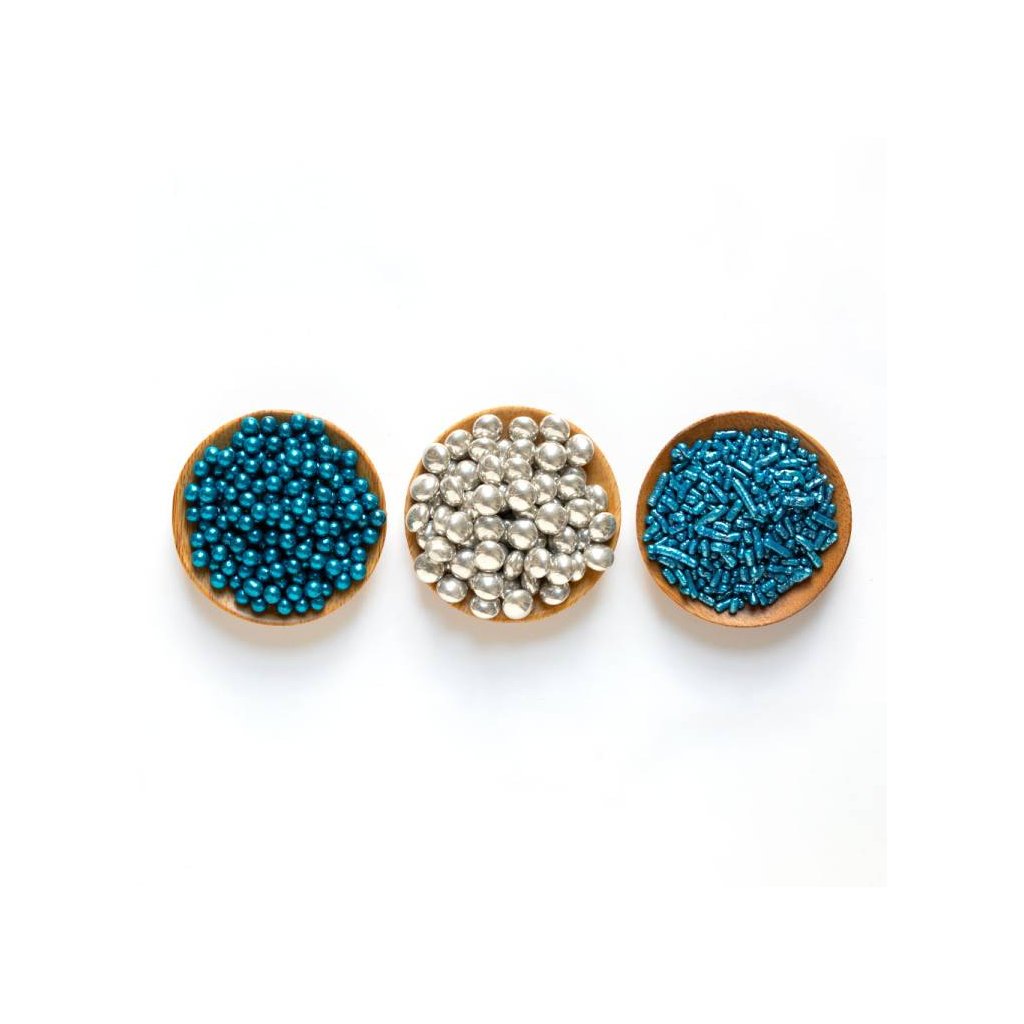 Složení: cukr, pšeničná mouka, maltodextrin, rybí želatina, barviva E174, E133, leštící látky E903, E904, rostlinný olej (kokosový)