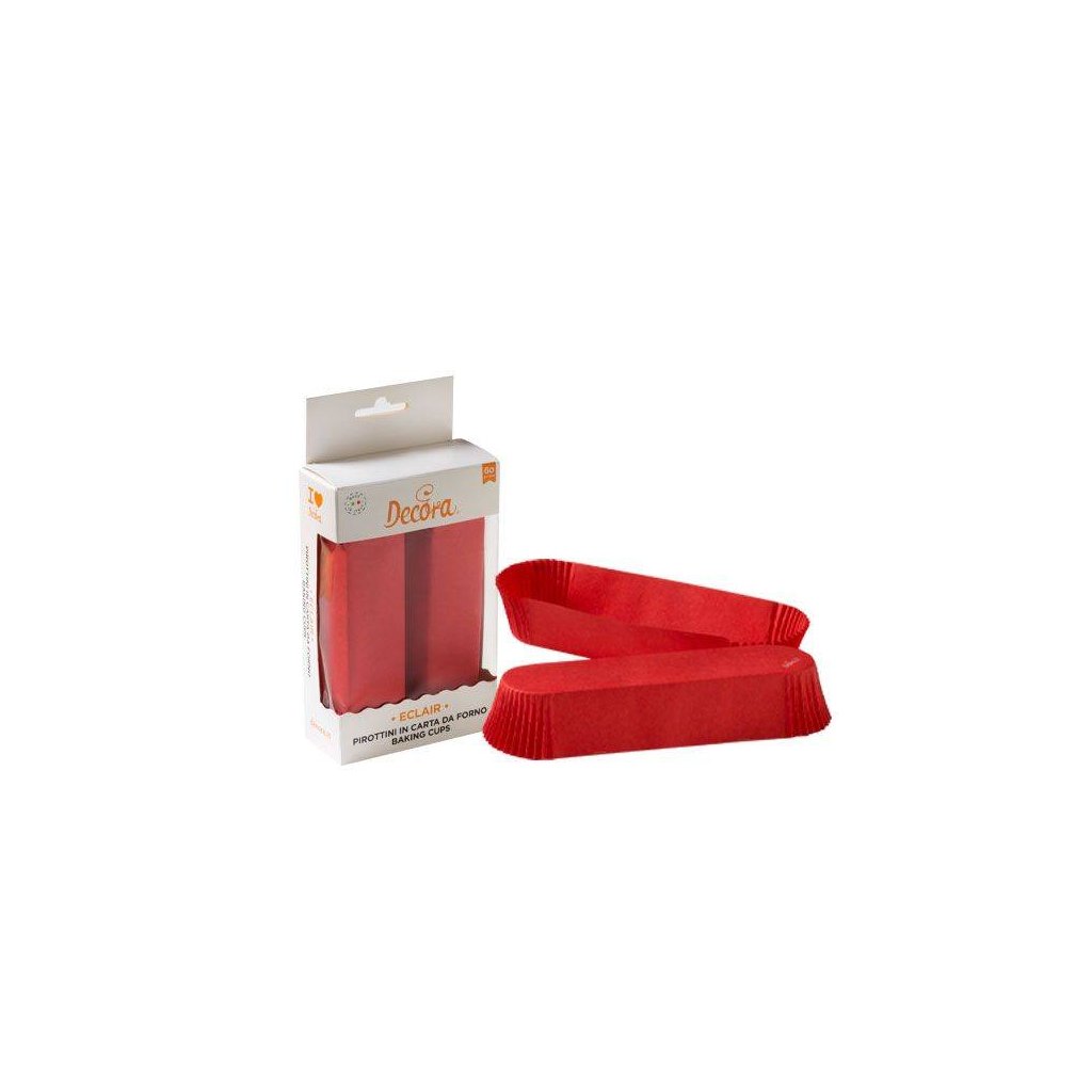 Papírové košíčky na eclair 135x33x28mm červené 60ks - Decora | Cukrářské potřeby
