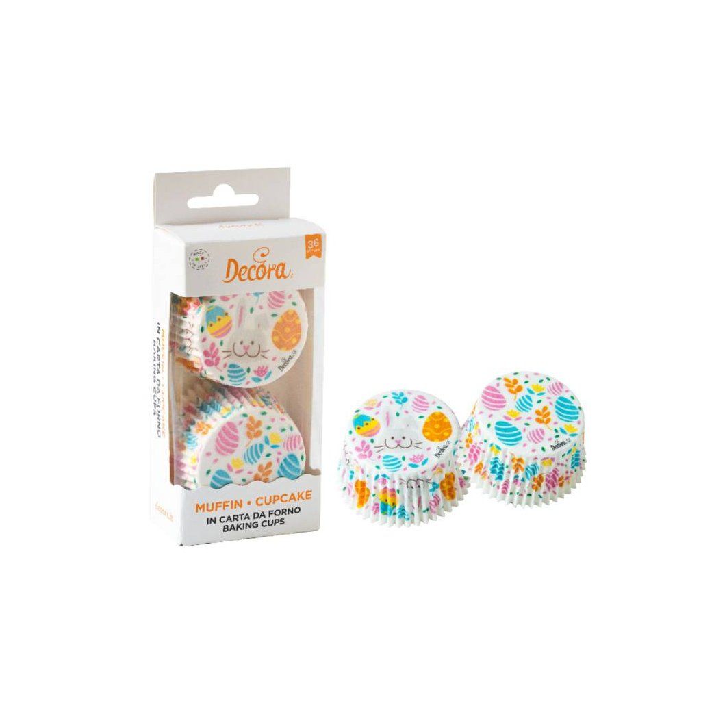 Košíčky na muffiny Decora bílé s velikonočními vajíčky (36 ks) ▹
