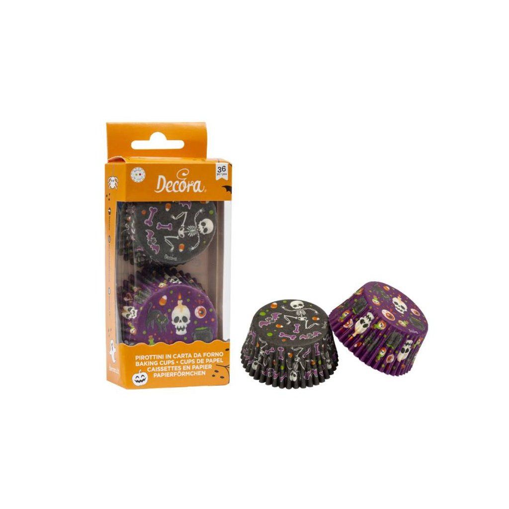 Košíčky na muffiny Decora černé a fialové s halloweenským motivem (36 ks) ▹