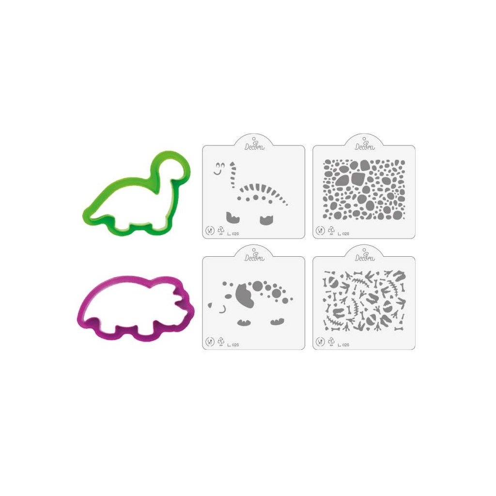 Decora vykrajovátka se stencily Dinosauři (2 vykrajovátka, 4 stencily) ♡