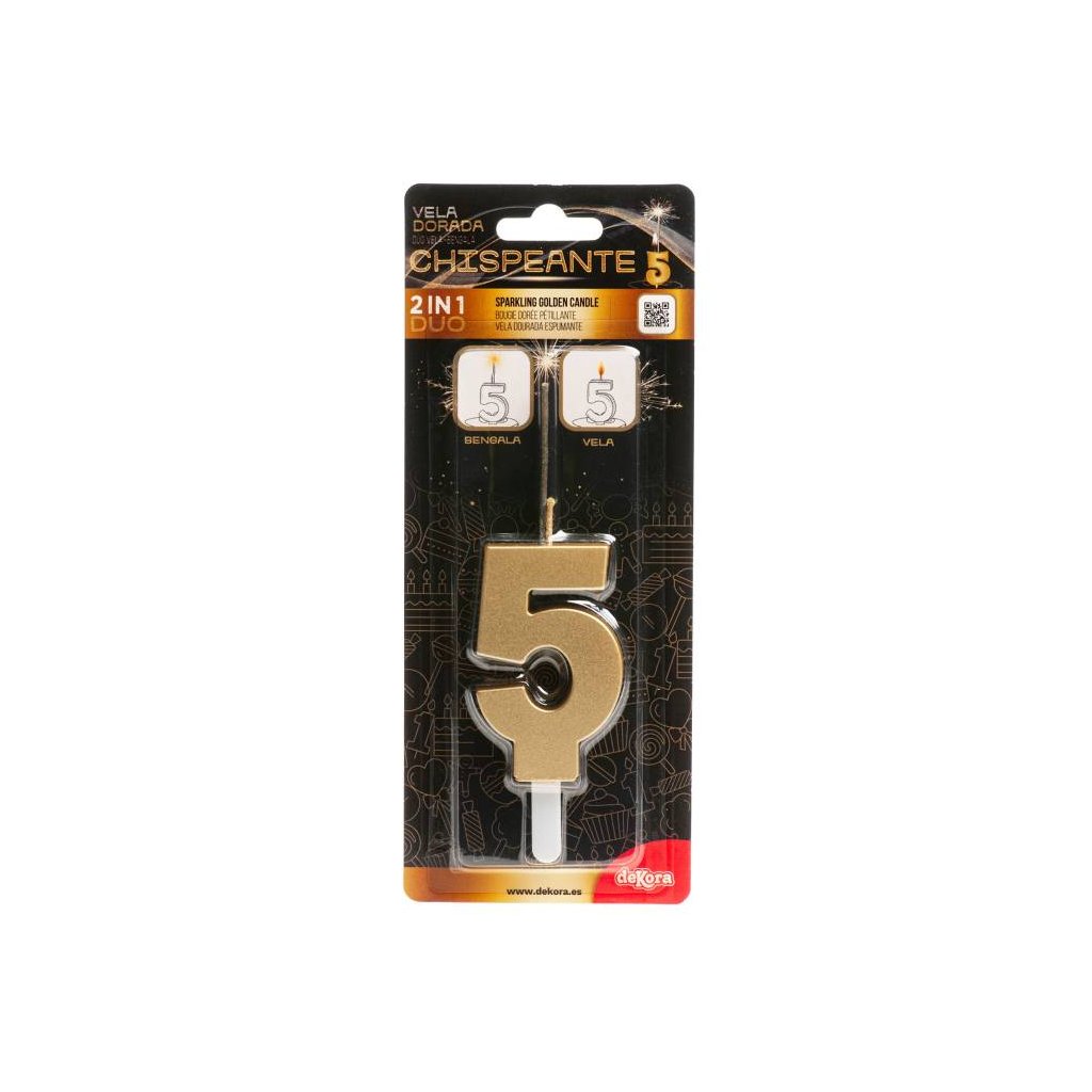 Dekora svíčka s prskavkou zlatá číslo 5 ♡