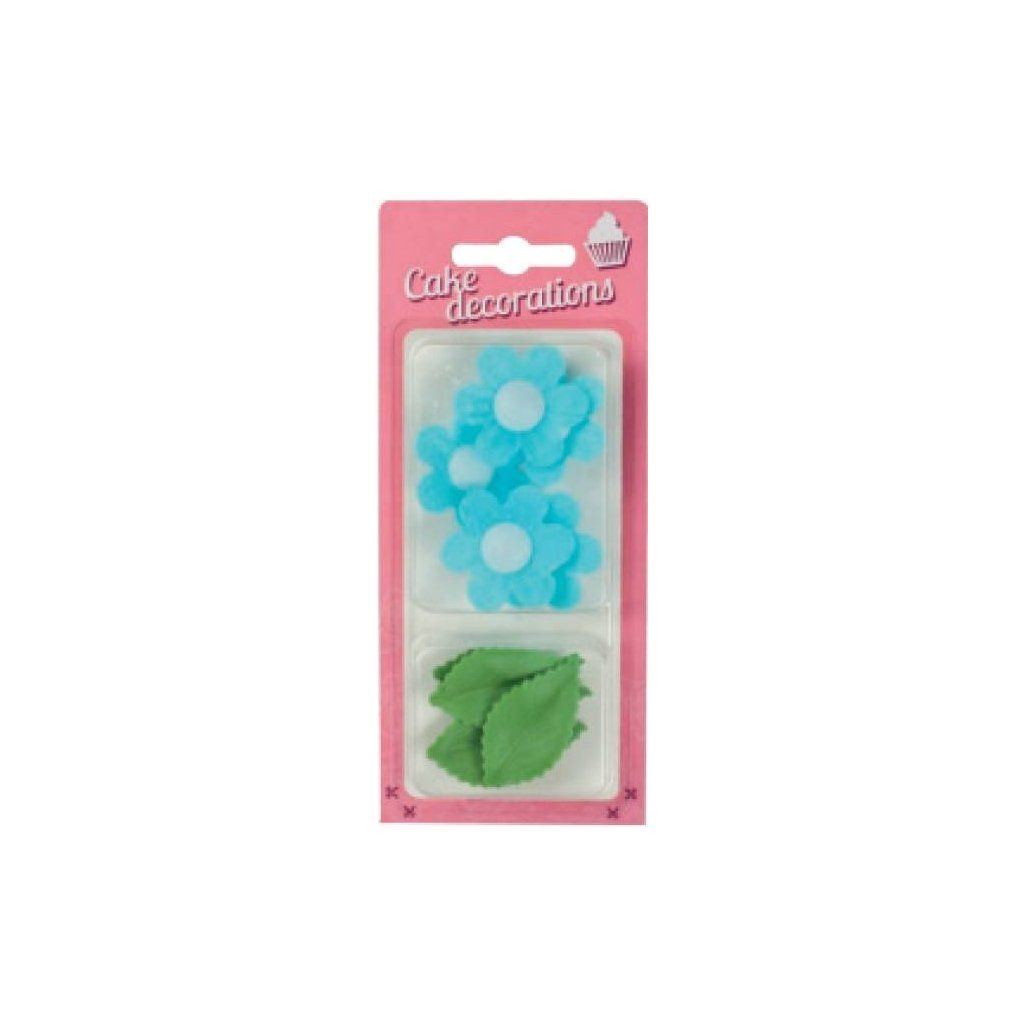 Dekorace z jedlého papíru Pomněnky modré s lístky (11 ks) ▹