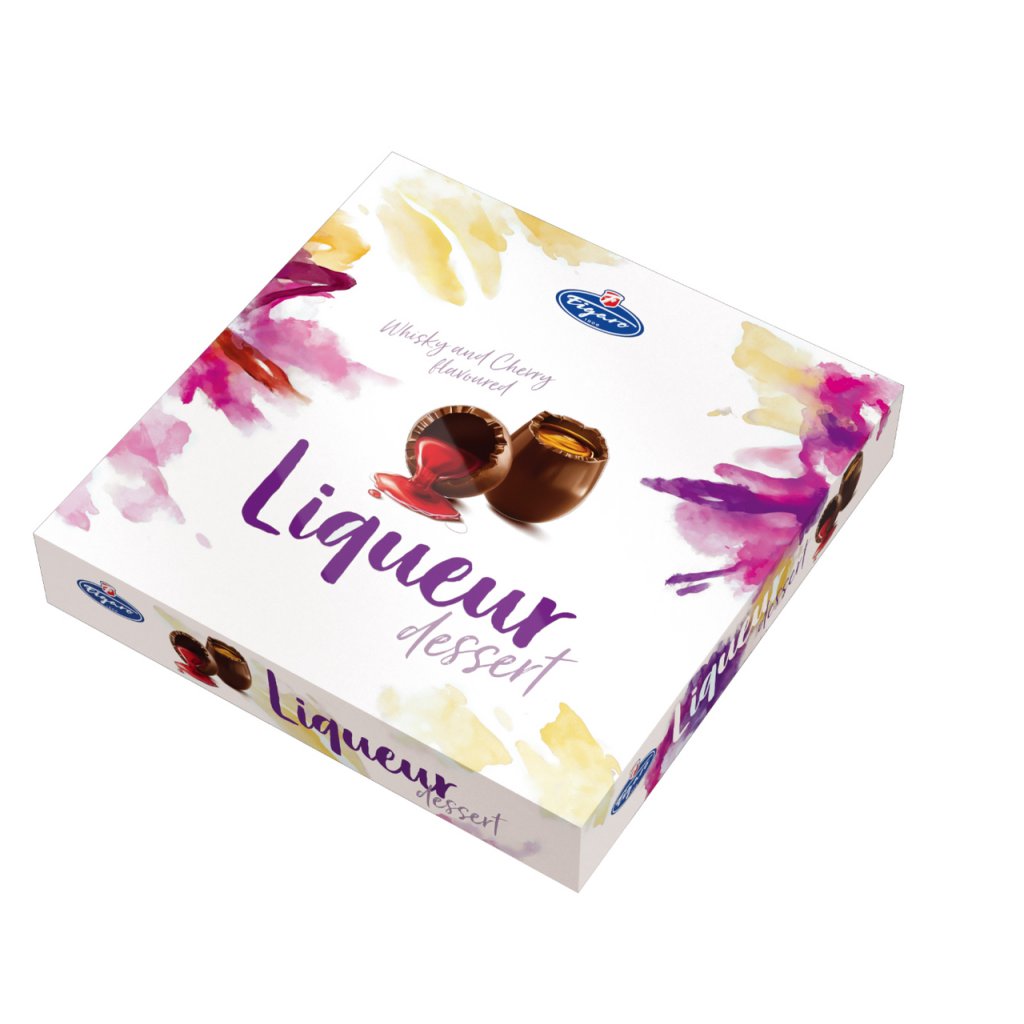 - Kolekce plněné čokolády. Hořká čokoláda (26%) s alkoholovou náplní s příchutí višní