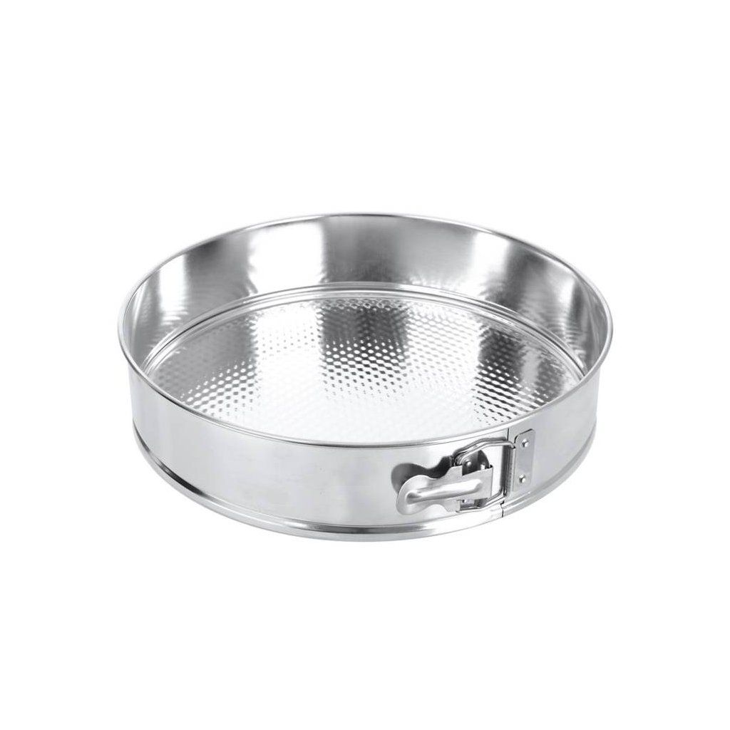 Dortová kulatá forma s odnímatelným dnem je opatřena přezkou pro snadné vyjmutí korpusů.