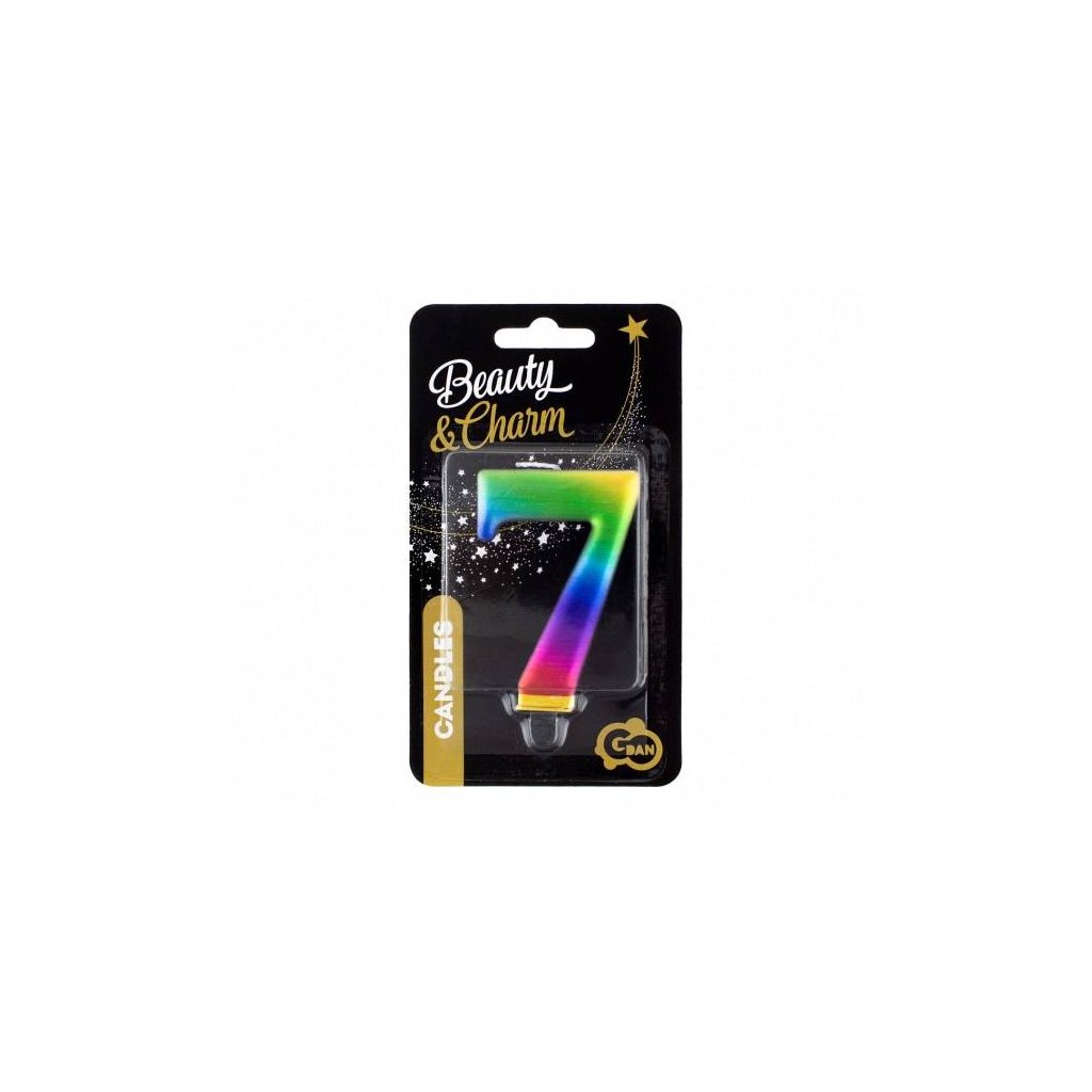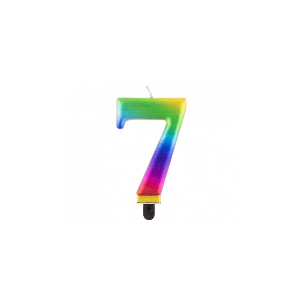 Svíčka - číslice "7" duhová 8cm 1 ks