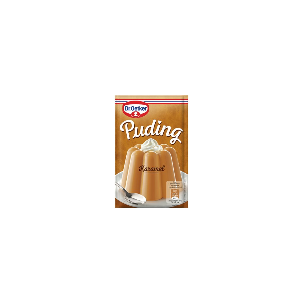 - Puding karamelový v prášku na 1/2 l mléka (4 porce). 1. Obsah sáčku dobře rozmícháme se 2-3 polévkovými lžícemi cukru (30-40 g) v 1/3 připraveného mléka. 2. Zbylé 2/3 mléka přivedeme k varu. Poté odstavíme z plotny a vmícháme předem připravenou směs s pudingem. 3. Puding za stálého míchání vaříme asi 1 minutu. 4. Hotový puding nalijeme do misek nebo formiček vypláchnutých studenou vodou a necháme ztuhnout.
