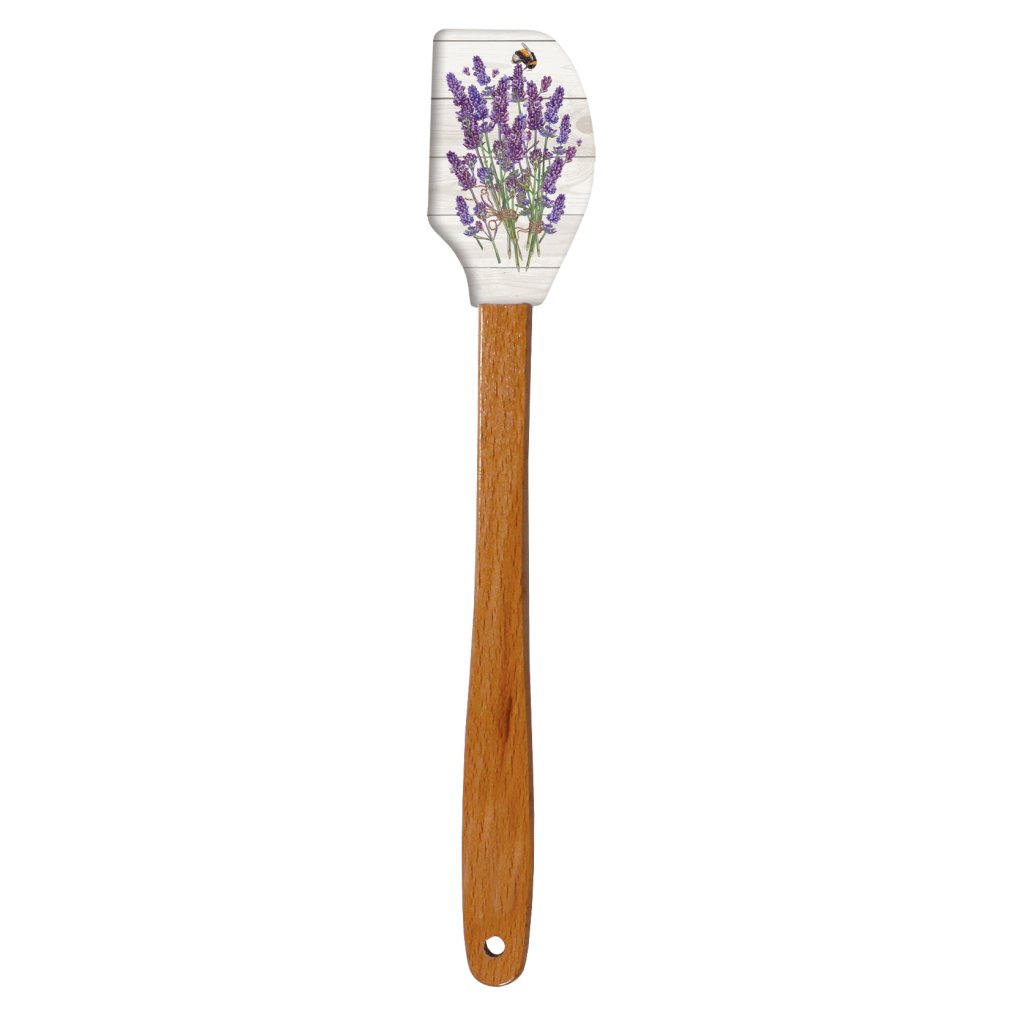 EXTRA pevná - dřevěná kuchyňská stěrka - malá, vzhled LEVANDULE A VČELKA