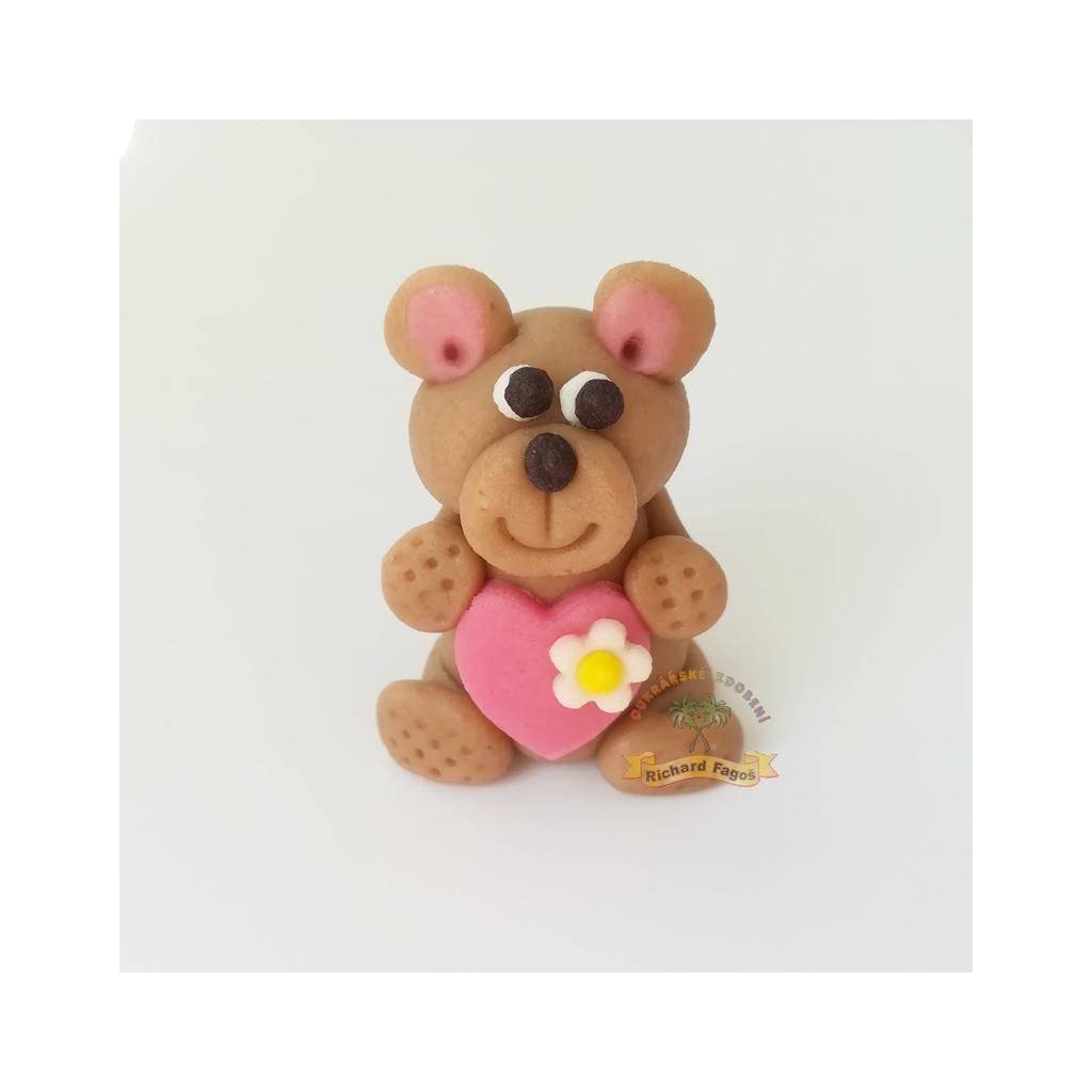 Figurka na dort medvídek růžové srdíčko 5cm z kokosové hmoty - Fagos