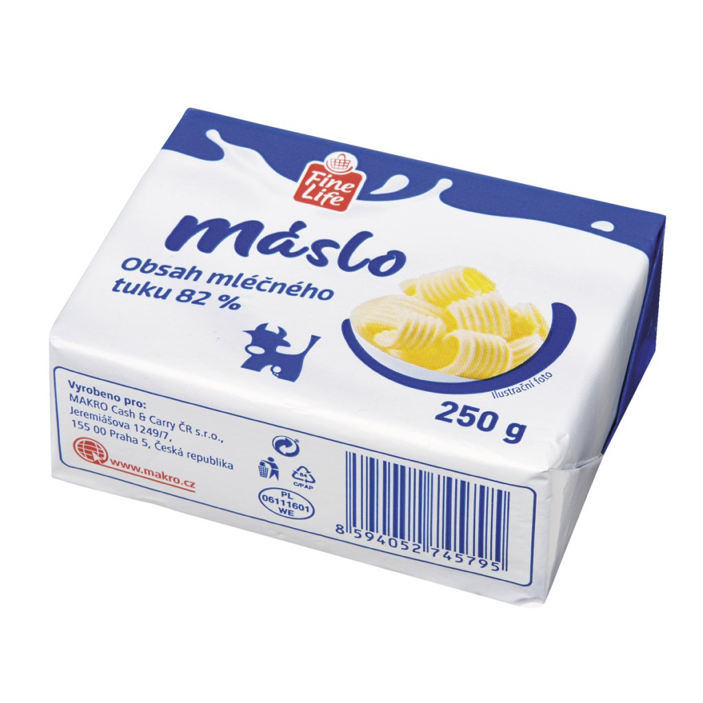 - Máslo. Obsah mléčného tuku: 82 % hm.